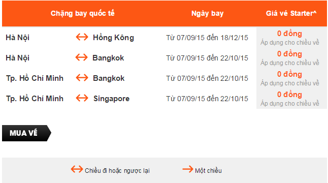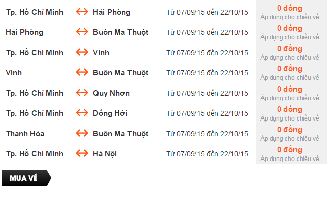 Lưu ý: Để mua được vé khuyến mại 0 đồng cho chiều về, Quý khách phải lựa chọn hành trình bay khứ hồi trong giai đoạn có khuyến mại. Khi đó giá mở bán cho chiều đi là giá bình thường trên hệ thống, giá mở bán cho chiều về được khuyến mại chỉ 0 đồng