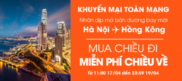 Nhân dịp khai trương mở bán đường bay Hà Nội  - Hồng Kông và ngược lại,  Jetstar Pacific hân hạnh giới thiệu chương trình khuyến mại “Mua chiều đi, miễn phí chiều về”