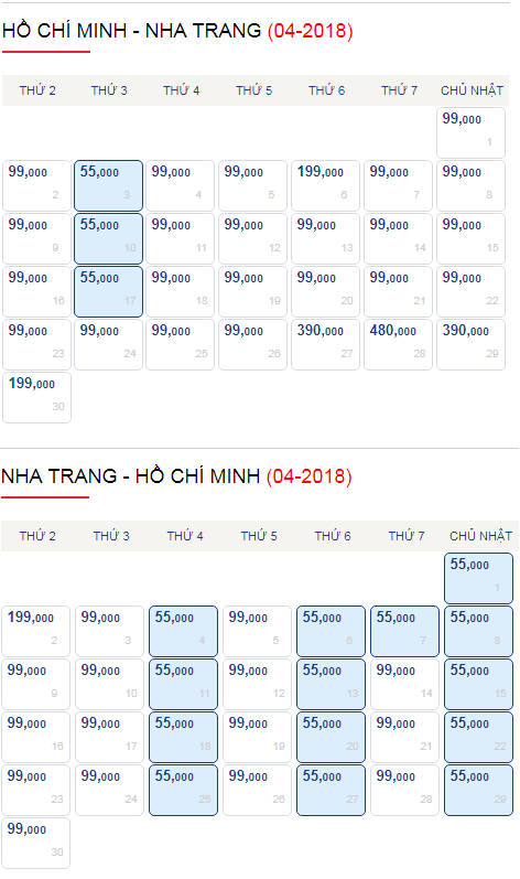 Trong tháng 4 này có 1 số ngày với giá vé khuyến mãi chỉ 48.000 VND (Giá vé chưa bao gồm có thuế phí).