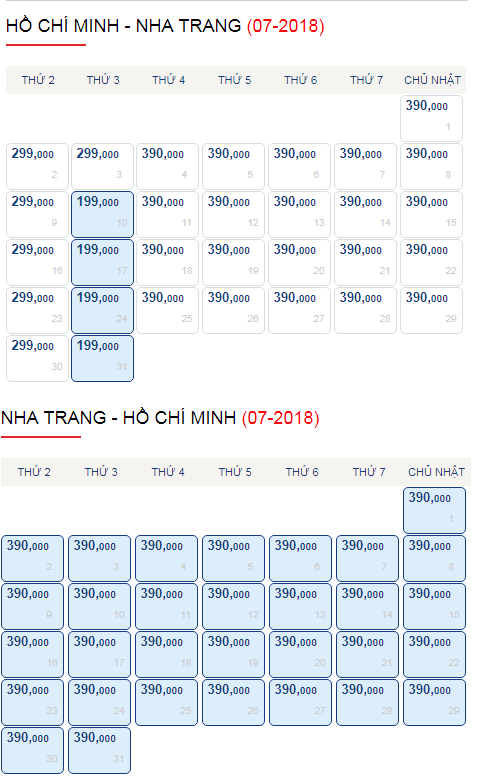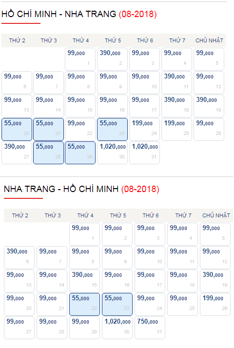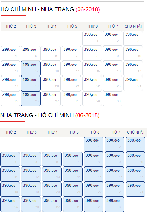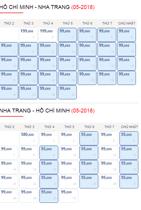 Bảng giá vé HCM - NhaTrang Tháng 3