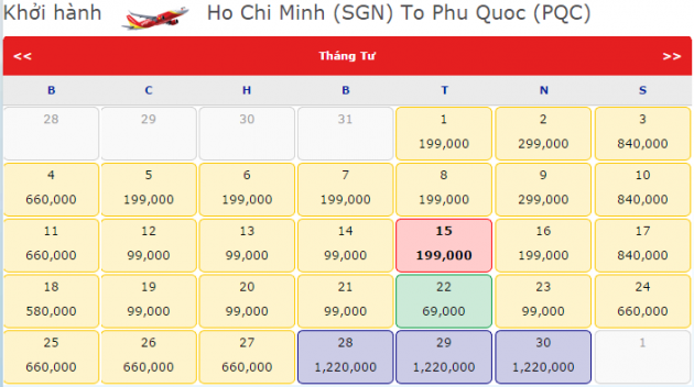 Vé máy bay giá rẻ của hãng hàng không VietJet Air đi Phú Quốc trong những tháng đầu năm 2015. Rời xa thành phố Sài Gòn nhộn nhịp để đến quốc đảo Phú Quốc lãng mạng và thơ mộng với tiếng sóng biển dịu dàng êm ả. Cũng cái nắng dịu trên bờ biển . Với những con người không thích sự nhộn nhịp thì Phú Quốc là điểm đến tuyệt vời.