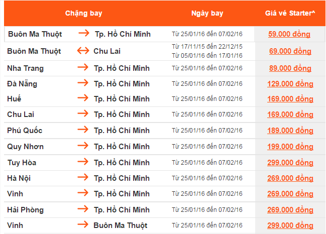 Giá vé một chiều, chưa  bao gồm thuế, phí. Giá vé phụ thuộc tình trạng chỗ của chuyến bay và chỉ mở bán  cho một số chuyến bay và ngày bay. Vé không được hoàn, hạn chế thay đổi, nếu thay đổi phải đóng phí.  Không bao gồm Hành lý ký gửi. Các tiêu chuẩn về trọng lượng và kích thước của Hành lý xách tay sẽ được áp dụng. Hành khách mang Hành lý xách tay không đúng với quy định sẽ phải làm thủ tục ký gửi và phải đóng phí.