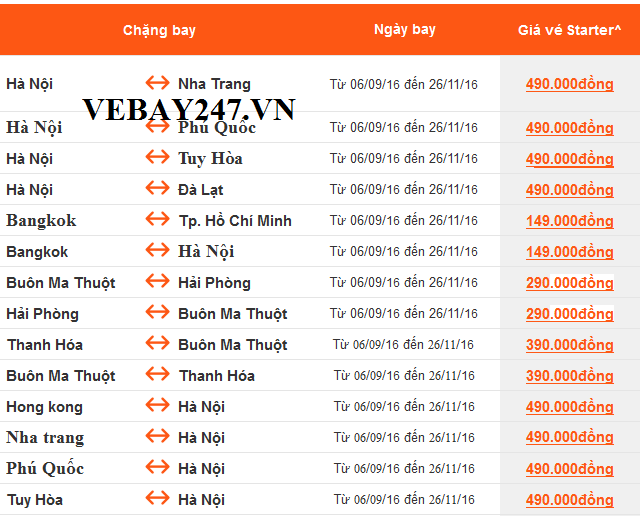 Giá vé một chiều, chưa bao gồm thuế, phí. Giá vé phụ thuộc tình trạng chỗ của chuyến bay và chỉ mở bán cho một số chuyến bay và ngày bay. Vé không được hoàn, hạn chế thay đổi, nếu thay đổi phải đóng phí. Không bao gồm Hành lý ký gửi. Các tiêu chuẩn về trọng lượng và kích thước của Hành lý xách tay sẽ được áp dụng. Hành khách mang Hành lý xách tay không đúng với quy định sẽ phải làm thủ tục ký gửi và phải đóng phí.