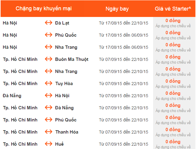 Lưu ý: Để mua được vé khuyến mại 0 đồng cho chiều về, Quý khách phải lựa chọn hành trình bay khứ hồi trong giai đoạn có khuyến mại. Khi đó giá mở bán cho chiều đi là giá bình thường trên hệ thống, giá mở bán cho chiều về được khuyến mại chỉ 0 đồng