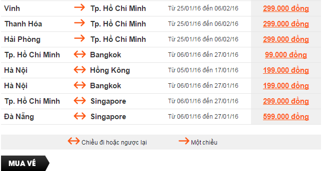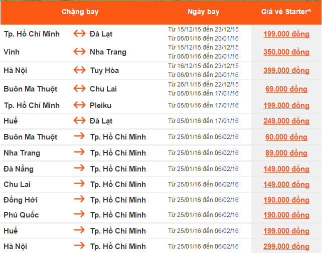 Giá vé một chiều, chưa  bao gồm thuế, phí. Giá vé phụ thuộc tình trạng chỗ của chuyến bay và chỉ mở bán  cho một số chuyến bay và ngày bay. Vé không được hoàn, hạn chế thay đổi, nếu thay đổi phải đóng phí.  Không bao gồm Hành lý ký gửi. Các tiêu chuẩn về trọng lượng và kích thước của Hành lý xách tay sẽ được áp dụng. Hành khách mang Hành lý xách tay không đúng với quy định sẽ phải làm thủ tục ký gửi và phải đóng phí.