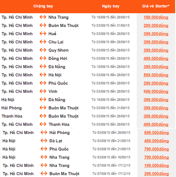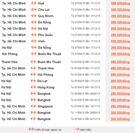 Giá vé một chiều, chưa  bao gồm thuế, phí. Giá vé phụ thuộc tình trạng chỗ của chuyến bay và chỉ mở bán  cho một số chuyến bay và ngày bay. Vé không được hoàn, hạn chế thay đổi, nếu thay đổi phải đóng phí.  Không bao gồm Hành lý ký gửi. Các tiêu chuẩn về trọng lượng và kích thước của Hành lý xách tay sẽ được áp dụng. Hành khách mang Hành lý xách tay không đúng với quy định sẽ phải làm thủ tục ký gửi và phải đóng phí.
