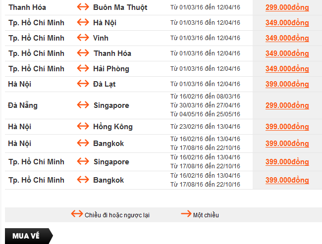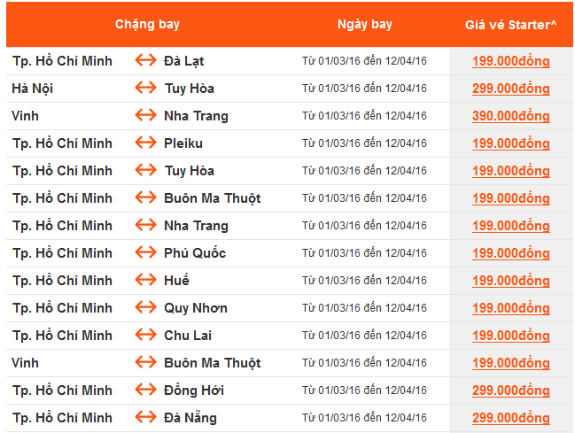 Giá vé một chiều, chưa bao gồm thuế, phí. Giá vé phụ thuộc tình trạng chỗ của chuyến bay và chỉ mở bán cho một số chuyến bay và ngày bay. Vé không được hoàn, hạn chế thay đổi, nếu thay đổi phải đóng phí. Không bao gồm Hành lý ký gửi. Các tiêu chuẩn về trọng lượng và kích thước của Hành lý xách tay sẽ được áp dụng. Hành khách mang Hành lý xách tay không đúng với quy định sẽ phải làm thủ tục ký gửi và phải đóng phí.
