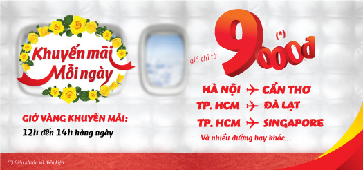 Vietjet Air - Hãng hàng không giá rẻ hàng đầu Việt Nam luôn có chương trình khuyến mãi đặc biệt như chương trình khuyến mãi giá vé sốc như Hà Nội – Cần Thơ giá chỉ từ 9,000 đồng, giá 9000 đ đi khắp mọi nơi, khuyến mãi 240.000 cơ hội bay giá chỉ từ 24.000 đồng, bay cùng VietJet Air Trúng xe hơi