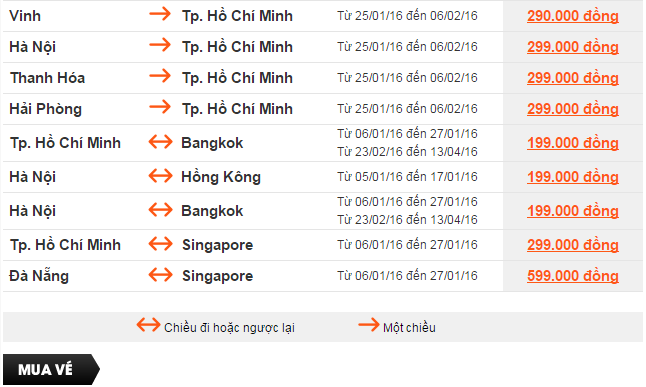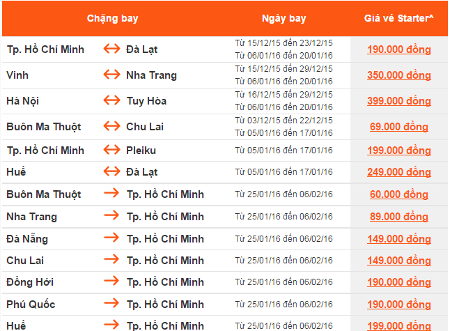Giá vé một chiều, chưa  bao gồm thuế, phí. Giá vé phụ thuộc tình trạng chỗ của chuyến bay và chỉ mở bán  cho một số chuyến bay và ngày bay. Vé không được hoàn, hạn chế thay đổi, nếu thay đổi phải đóng phí.  Không bao gồm Hành lý ký gửi. Các tiêu chuẩn về trọng lượng và kích thước của Hành lý xách tay sẽ được áp dụng. Hành khách mang Hành lý xách tay không đúng với quy định sẽ phải làm thủ tục ký gửi và phải đóng phí.